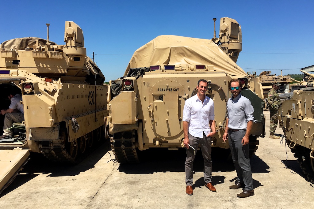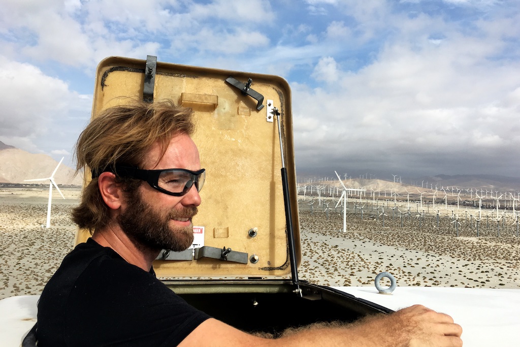 It isn't all fun and exploration: work sometimes intrudes. Brett spent time 1000' underground in an environmentally friendly mine, and 100m above ground helping keep wind turbines operational. Then he got back to his old expertise, helping the Army keep their Bradleys up and running.