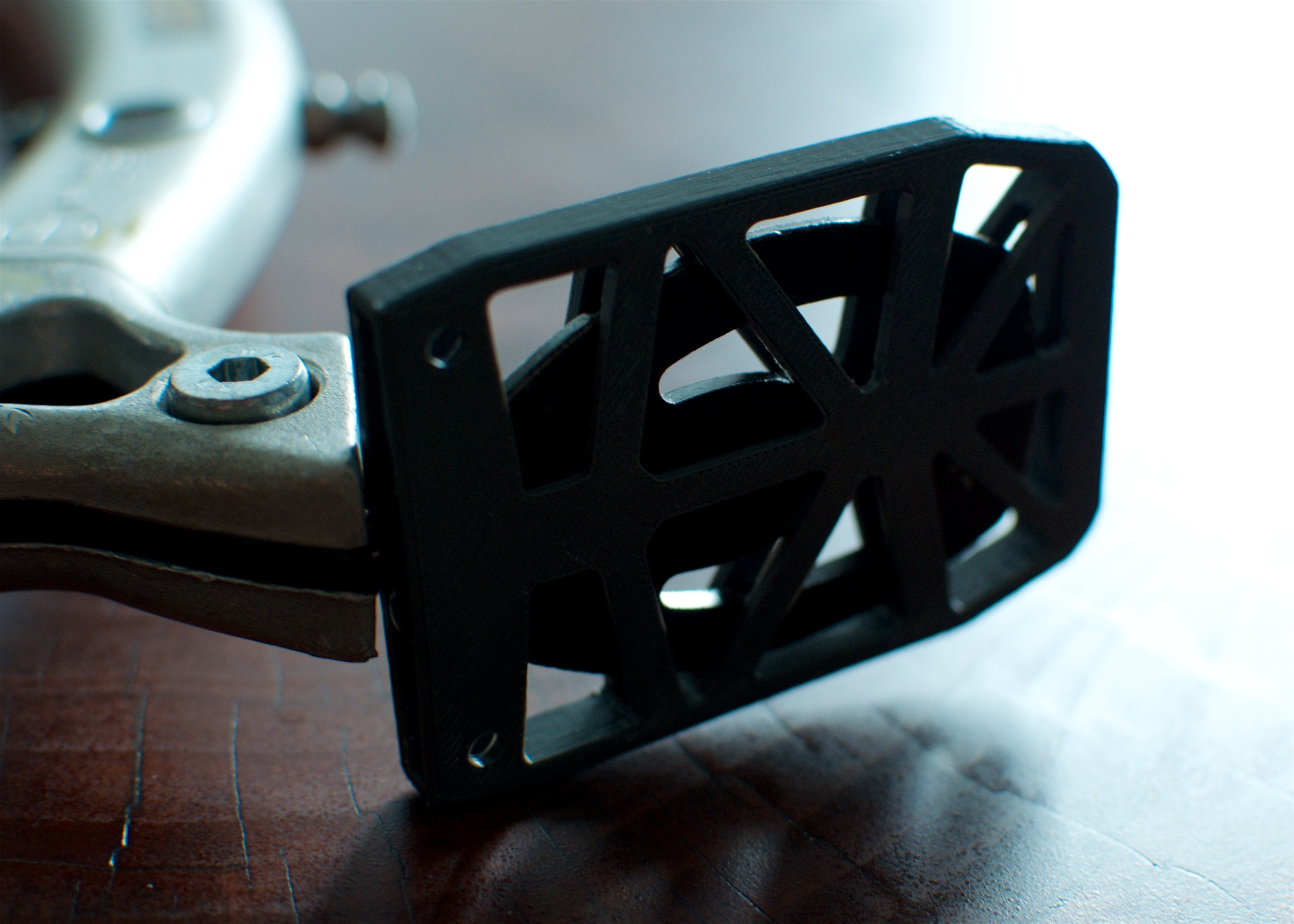 Designed to fit a Petzl Quark, it is easy to fine-tune to different axes. Using ABS, the pick protector is 3.9g and the adze is 11.3g. Friction mostly works but the 3mm holes are there to secure it with chord. Personally, I this this is better than the OEM caps... Certainly better than the cardboard, duct tape, plastic tubing, garden hose, tennis balls, pool noodle, bike tire, or any other method I've tried.